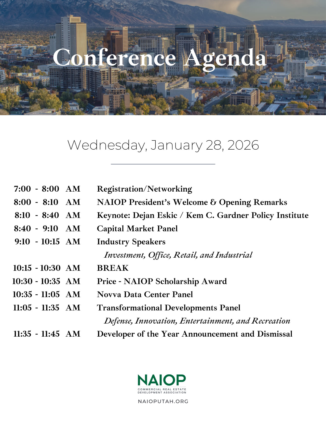 8:00 – 8:10 AM – NAIOP President’s Welcome & Opening Remarks